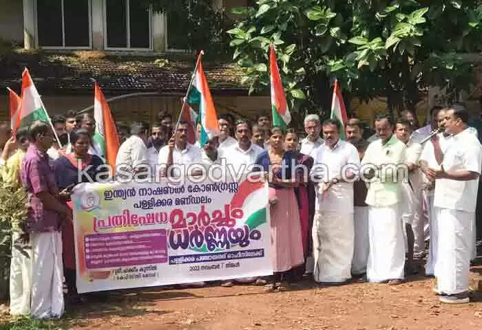 Keywords: Latest-News, Kerala, Kasaragod, Top-Headlines, Pallikara, Congress, Protest, Political-News, Politics, Pallikara-Panchayath, Congress held march to Pallikkara panchayat office.
