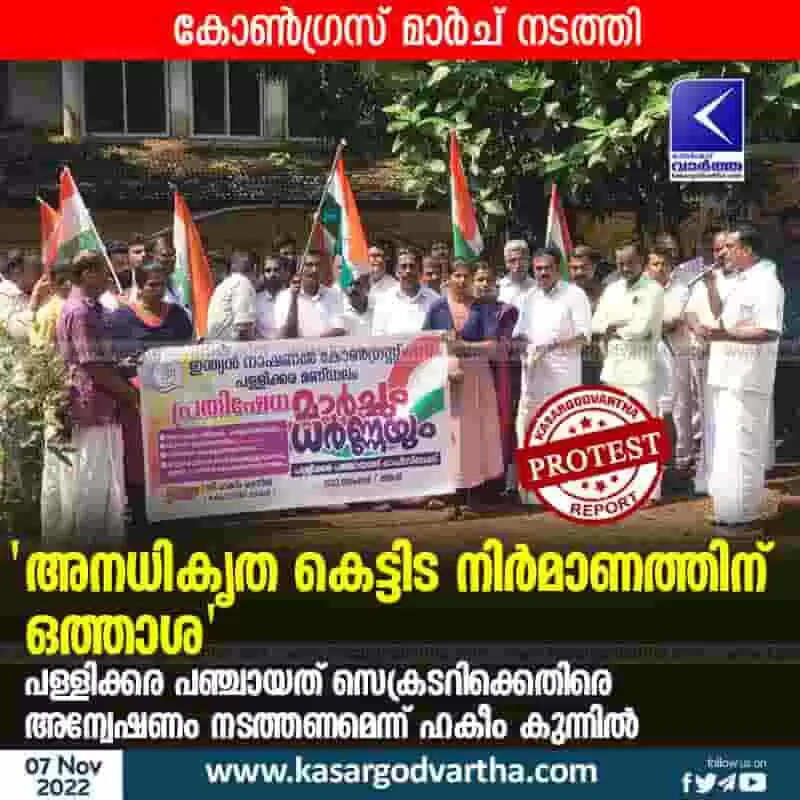 Protest | 'അനധികൃത കെട്ടിട നിര്മാണത്തിന് ഒത്താശ'; പള്ളിക്കര പഞ്ചായത് സെക്രടറിക്കെതിരെ അന്വേഷണം നടത്തണമെന്ന് ഹകീം കുന്നില്; കോണ്ഗ്രസ് മാര്ച് നടത്തി