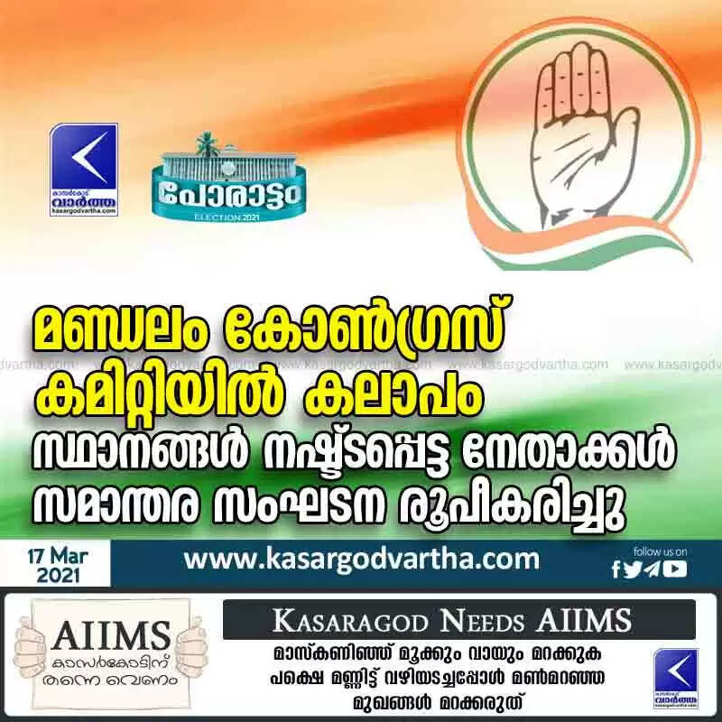 മണ്ഡലം കോൺഗ്രസ് കമിറ്റിയിൽ കലാപം; സ്ഥാനങ്ങൾ നഷ്ട്ടപ്പെട്ട നേതാക്കൾ സമാന്തര സംഘടന രൂപീകരിച്ചു