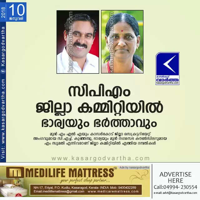 Keywords: Kasaragod, Kerala, news, husband, House-wife, Conference, CPM, Political party, Politics, Top-Headlines, Couples in CPM District committee
