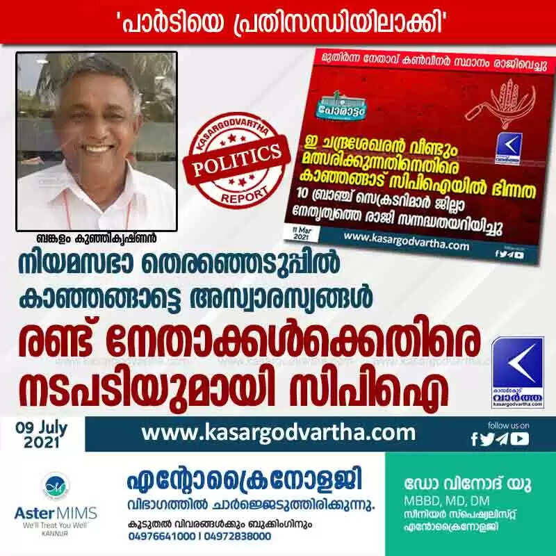 Keywords: Kasaragod, Kerala, News, CPI, Political party, Politics, Top-Headlines, Election, Kanhangad, District, Committee, Secretary, LDF, Protest, CPI district council takes disciplinary action against 2 leaders.