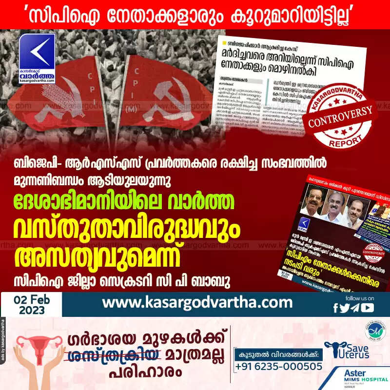 CP Babu | ബിജെപി- ആർഎസ്എസ് പ്രവർത്തകരെ രക്ഷിച്ച സംഭവത്തിൽ മുന്നണിബന്ധം ആടിയുലയുന്നു; 'സിപിഐ നേതാക്കളാരും കൂറുമാറിയിട്ടില്ല'; ദേശാഭിമാനിയിലെ വാര്ത്ത വസ്തുതാവിരുദ്ധവും അസത്യവുമെന്ന് സിപിഐ ജില്ലാ സെക്രടറി സി പി ബാബു