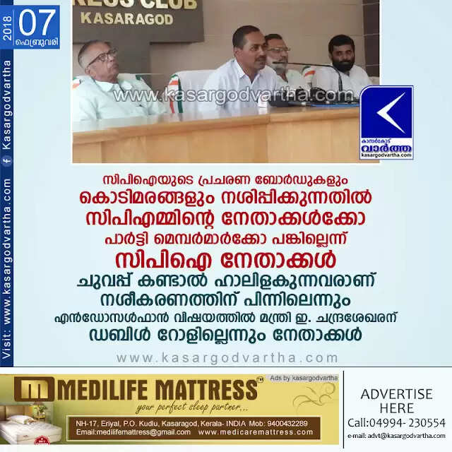 Keywords: Kasaragod, Kerala, News, CPI, Politics, Minister, Endosulfan, CPI on attack incidents.