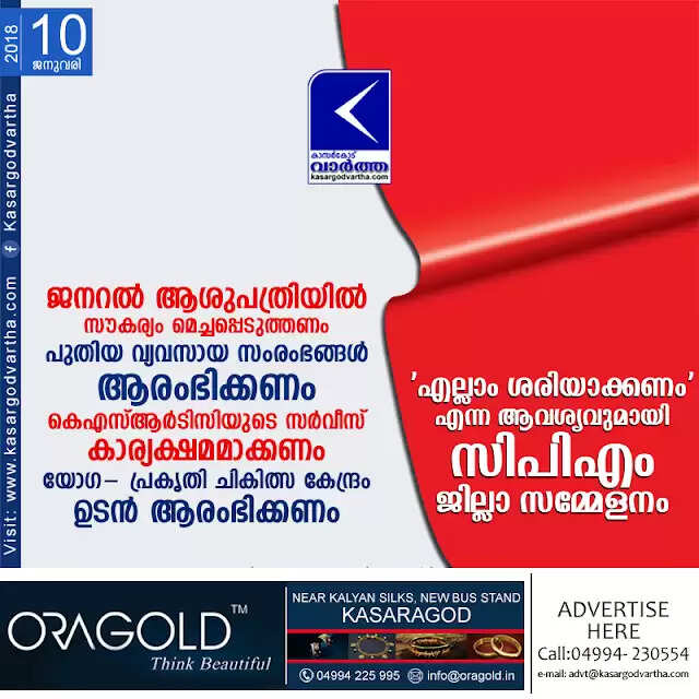 കാസര്കോട്: (www.kasargodvartha.com 10.01.2018) കാസര്കോട് ജനറല് ആശുപത്രിയില് കൂടുതല് തസ്തികകള് സൃഷ്ടിച്ച് പ്രവര്ത്തനം മെച്ചപ്പെടുത്തണമെന്ന് സിപിഎം ജില്ലാസമ്മേളനം ആവശ്യപ്പെട്ടു. താലൂക്ക് ആശുപത്രി ജനറല് ആശുപത്രിയായി മാറിയിട്ട് വര്ഷങ്ങളായി. 1961ലെ സ്റ്റാഫ് പാറ്റേണാണ് നിലവിലുള്ളത്. ജനറല് ആശുപത്രി ആരംഭിക്കുമ്പോള് 400 കിടക്കകളുണ്ടാകുമെന്ന് പ്രഖ്യാപിച്ചിരുന്നു. ഇത് പ്രാവര്ത്തികമാക്കിയിട്ടില്ല. ആവശ്യത്തിന് തസ്തികകള് സൃഷ്ടിച്ച് 400 കിടക്കകളുള്ള ആശുപത്രിയായി ഉയര്ത്തണമെന്ന് സംസ്ഥാന സര്ക്കാരിനോട് ആവശ്യപ്പെട്ടു.