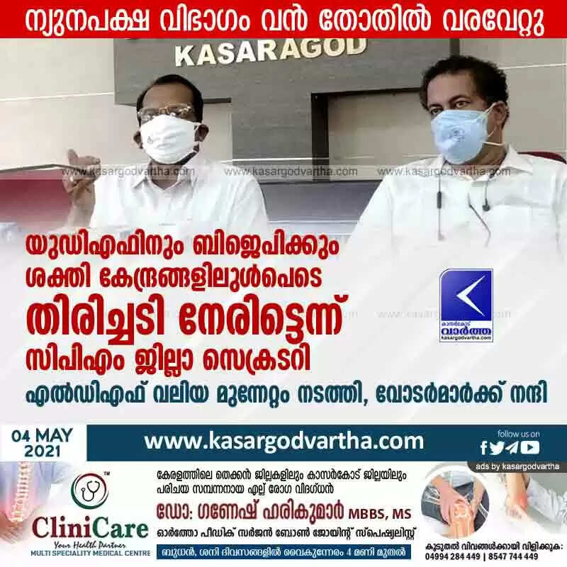 യുഡിഎഫിനും ബിജെപിക്കും ശക്തി കേന്ദ്രങ്ങളിലുള്പെടെ തിരിച്ചടി നേരിട്ടെന്ന് സിപിഎം ജില്ലാ സെക്രടറി; എൽഡിഎഫ് വലിയ മുന്നേറ്റം നടത്തി, ന്യുനപക്ഷ വിഭാഗം വന് തോതിൽ വരവേറ്റു, വോടർമാർക്ക് നന്ദി