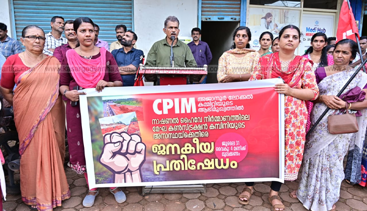 പ്രതിഷേധ പൊതുയോഗത്തിൽ മനോജ് കാരക്കുഴി അധ്യക്ഷത വഹിച്ചു. മൂലക്കണ്ടം പ്രഭാകരൻ, ദേവി രവീന്ദ്രൻ, ശിവജി വെള്ളിക്കോത്ത്, ടി.വി. പദ്മിനി എന്നിവർ സംസാരിച്ചു. അജാനൂർ ലോക്കൽ സെക്രട്ടറി വി.വി. തുളസി സ്വാഗതം പറഞ്ഞു.