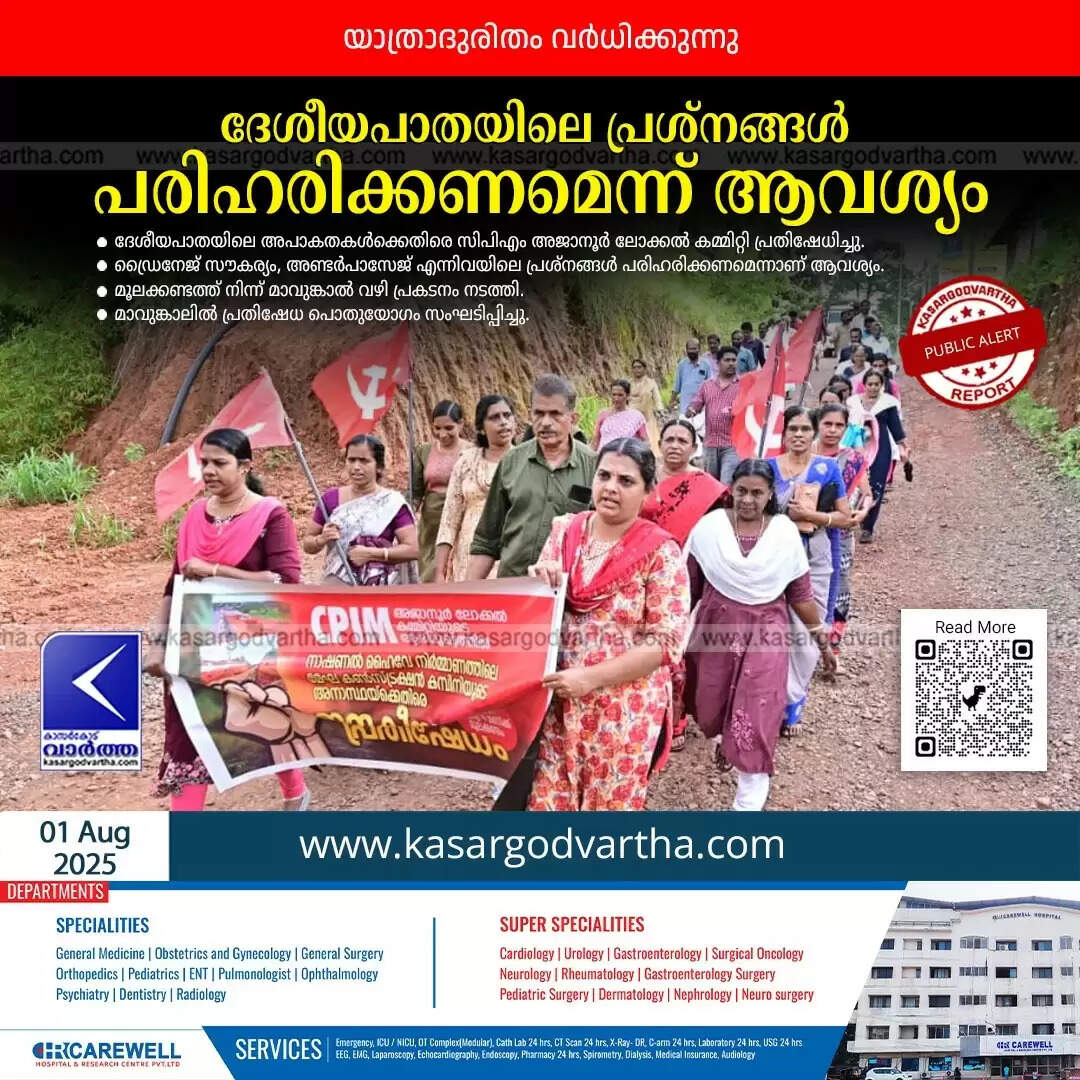 Article Summary: CPM protests Kanhangad national highway construction flaws.