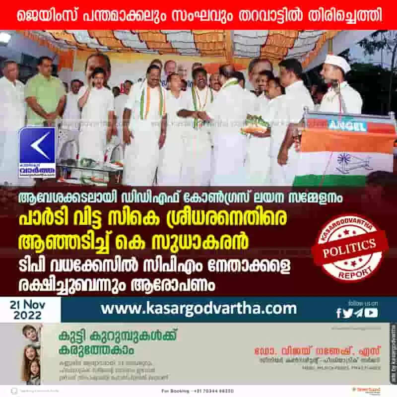 Congress | ആവേശക്കടലായി ഡിഡിഎഫ് - കോൺഗ്രസ് ലയന സമ്മേളനം; പാർടി വിട്ട സികെ ശ്രീധരനെതിരെ ആഞ്ഞടിച്ച് കെ സുധാകരൻ; ടിപി വധക്കേസിൽ സിപിഎം നേതാക്കളെ രക്ഷിച്ചുവെന്നും ആരോപണം