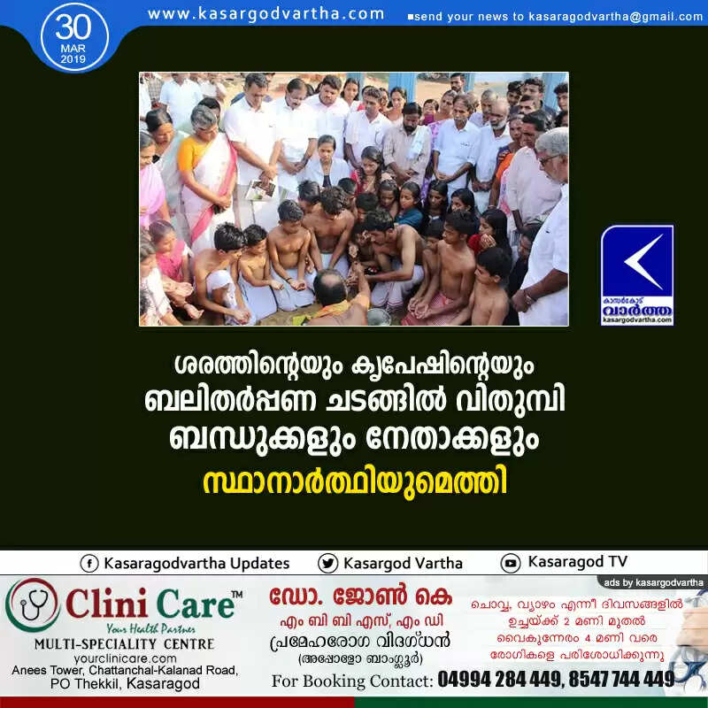 ശരത്തിന്റെയും കൃപേഷിന്റെയും ബലിതര്പ്പണ ചടങ്ങില് വിതുമ്പി ബന്ധുക്കളും നേതാക്കളും; സ്ഥാനാര്ത്ഥിയും സംബന്ധിച്ചു