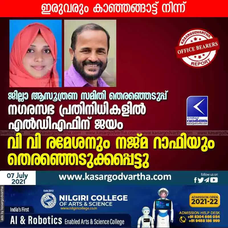 Keywords: Kerala, News, Kasaragod, Election, Top-Headlines, LDF, Political party, Politics, Municipality, District Planning Board election; VV Ramesan and Najma Rafi elected.