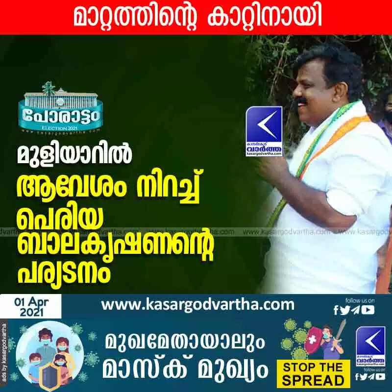 Keywords: Kerala, News, Kasaragod, Top-Headlines, Political party, Politics, Election, Niyamasabha-Election-2021, Muliyar, UDF, Balakrishnan Periya, Exciting election campaign of Periya Balakrishnan in Muliyar.
