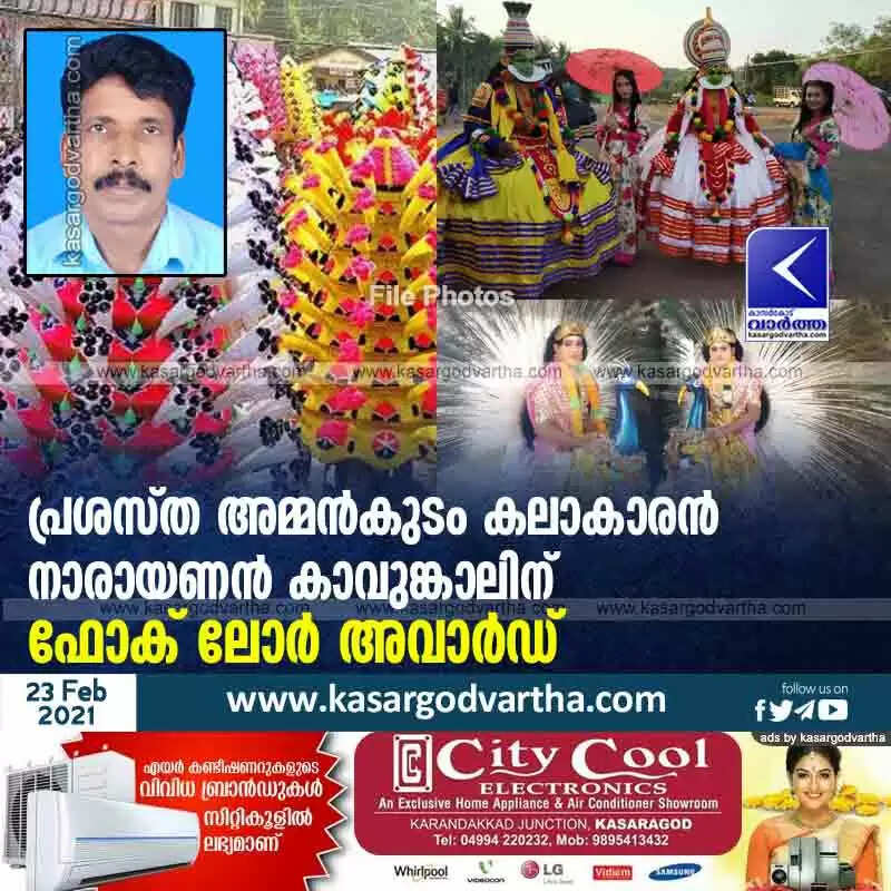 പ്രശസ്ത അമ്മങ്കുടം കലാകാരന് നാരായണന് കാവുങ്കാലിന് ഫോക്ലോര് അവാര്ഡ്