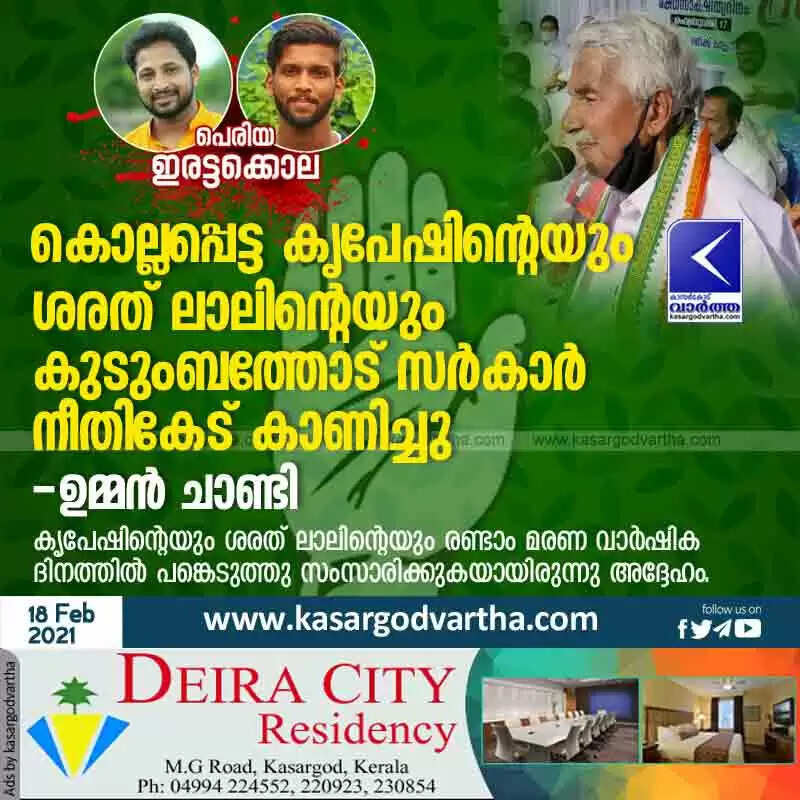 കൊല്ലപ്പെട്ട കൃപേഷിൻ്റെയും ശരത് ലാലിൻ്റെയും കുടുംബത്തോട് സർകാർ നീതികേട് കാണിച്ചു: ഉമ്മൻ ചാണ്ടി