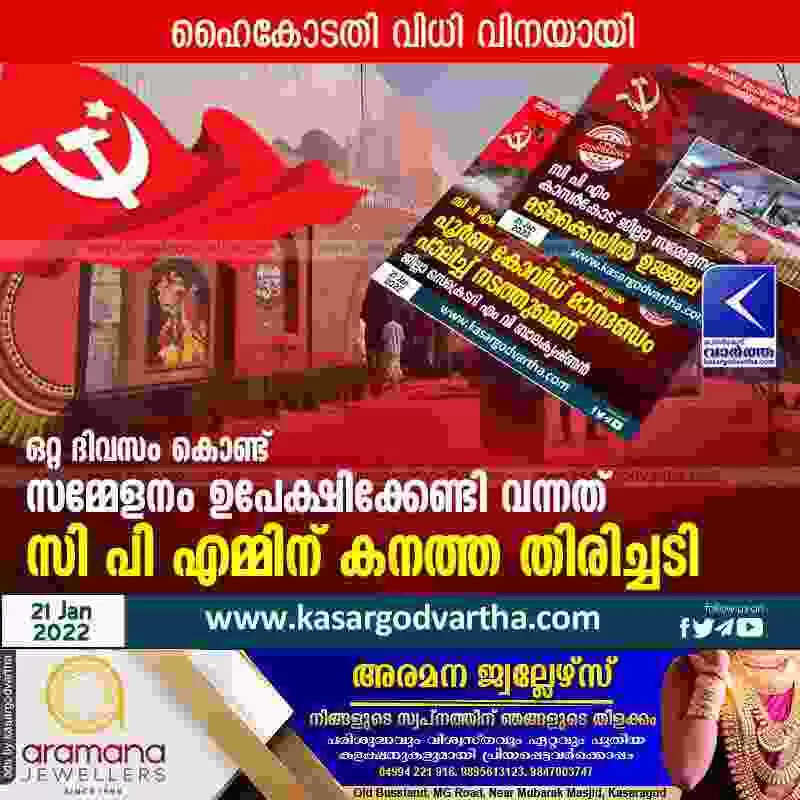 Keywords:  Kerala, Kasaragod, News, CPM, LDF, Top-Headlines, District-conference, Madikai, Politics, District Collector, COVID-19, High-Court,  High court verdict; Major setback for CPM