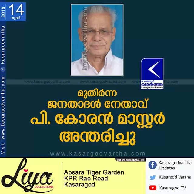Keywords: Kasaragod, Kerala, news, Top-Headlines, Death, Obituary, Political party, Politics, Janata Dal leader P. Koran Master passes away