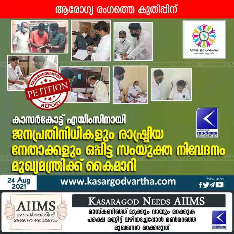 Keywords: K asaragod, Minister, Conducted Kasaragod, District, Politics, Members, Cherkala, Nellikunnu, Joint petition signed by representatives and political leaders for Kasaragod AIIMS handed over to CM.
