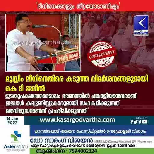 Keywords: News, Kerala, Kasaragod, Muslim-league, Top-Headlines, CPM, Politics, District, Conference, K T Jaleel, K T Jaleel criticizes Muslim League.