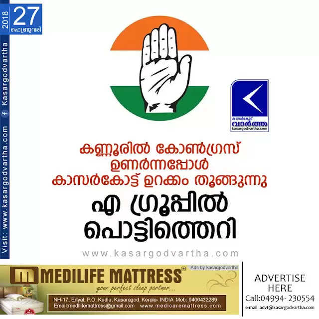 കണ്ണൂരില് കോണ്ഗ്രസ് ഉണര്ന്നപ്പോള് കാസര്കോട്ട് ഉറക്കം തൂങ്ങുന്നു; എ ഗ്രൂപ്പില് പൊട്ടിത്തെറി