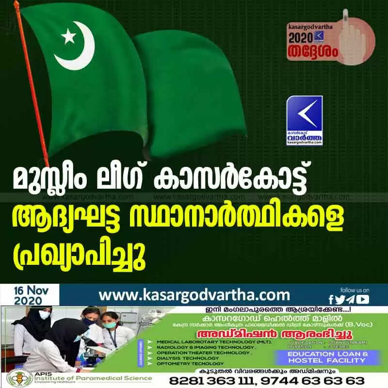 മുസ്ലീം ലീഗ് കാസര്കോട്ട് ആദ്യഘട്ട സ്ഥാനാര്ത്ഥികളെ പ്രഖ്യാപിച്ചു