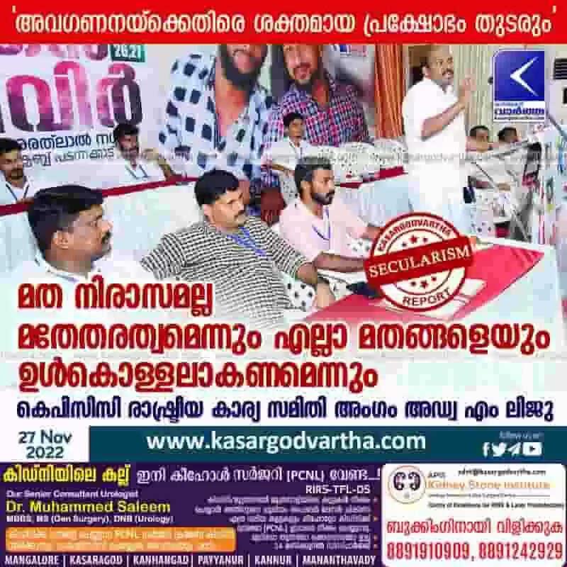 Keywords: Latest-News, Kerala, Kasaragod, Top-Headlines, Political-News, Politics, Kanhangad, Congress, Religion, KPCC political affairs committee member Adv. Liju about secularism.