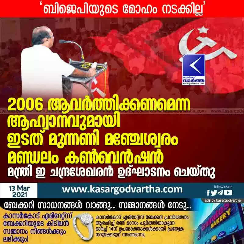2006 ആവർത്തിക്കണമെന്ന ആഹ്വാനവുമായി ഇടത് മുന്നണി മഞ്ചേശ്വരം മണ്ഡലം കൺവെൻഷൻ; മന്ത്രി ഇ ചന്ദ്രശേഖരൻ ഉദ്ഘാടനം ചെയ്തു