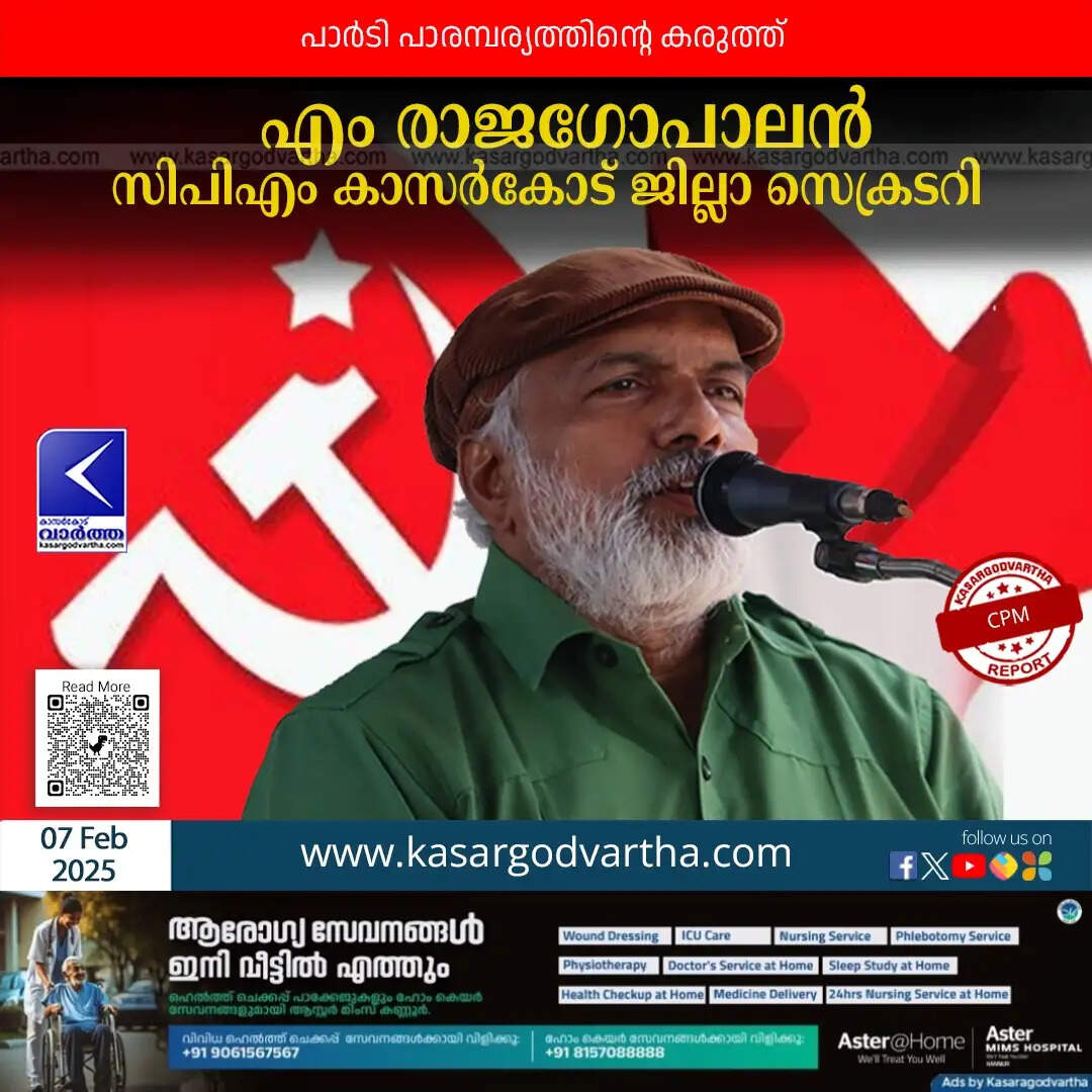 CPM | എം രാജഗോപാലൻ സിപിഎം കാസർകോട് ജില്ലാ സെക്രടറി