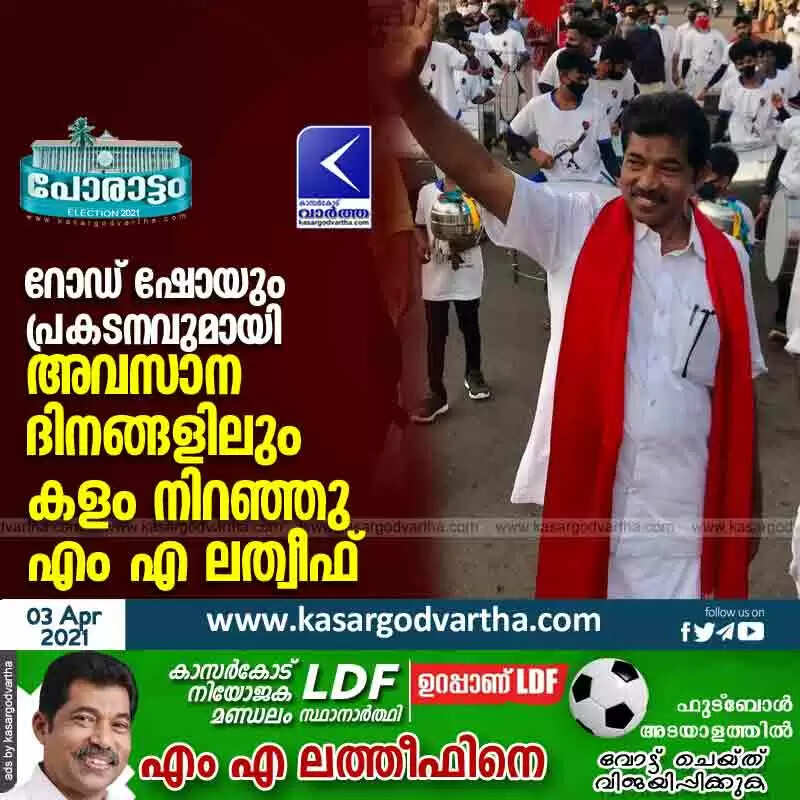 Keywords: Kerala, News, Kasaragod, Top-Headlines, Political party, Politics, Election, Niyamasabha-Election-2021, INL, MA Latheef last day road show as election campaign.