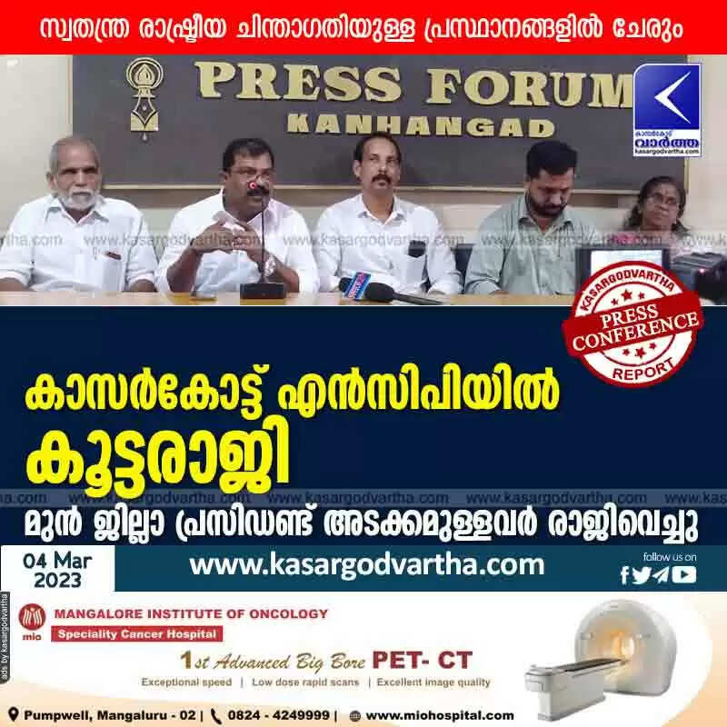 Keywords: Kanhangad, Kasaragod, News, Kerala, NCP, President, Leader, Press-forum, Politics, Political party, Political-News, Top-Headlines, Mass resignation in Kasaragod NCP.