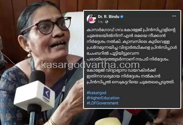 Order | കാസര്കോട് ഗവ. കോളജ് പ്രിന്സിപലിനെ നീക്കാന് നിര്ദേശം നല്കി മന്ത്രി ഡോ. ആര് ബിന്ദു; നടപടി എസ്എഫ്ഐയുടെ ശക്തമായ പ്രതിഷേധങ്ങള്ക്ക് പിന്നാലെ