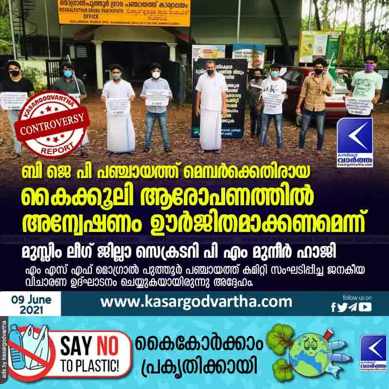 ബി ജെ പി പഞ്ചായത്ത് മെമ്പർക്കെതിരായ കൈക്കൂലി ആരോപണത്തിൽ അന്വേഷണം ഊർജിതമാക്കണമെന്ന് മുസ്ലിം ലീഗ് ജില്ലാ സെക്രടറി പി എം മുനീർ ഹാജി