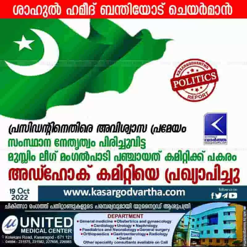 Ad Hoc Committee | പ്രസിഡന്റിനെതിരെ അവിശ്വാസ പ്രമേയം: സംസ്ഥാന നേതൃത്വം പിരിച്ചുവിട്ട മുസ്ലിം ലീഗ് മംഗല്പാടി പഞ്ചായത് കമിറ്റിക്ക് പകരം അഡ്ഹോക് കമിറ്റിയെ പ്രഖ്യാപിച്ചു