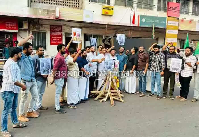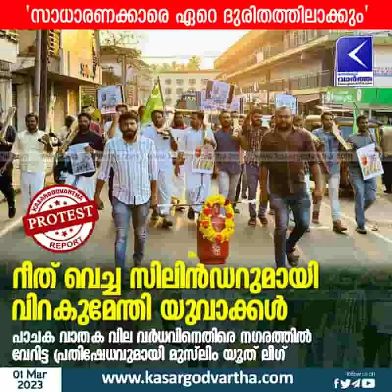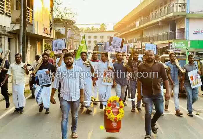 Keywords: Latest-News, Kerala, Kasaragod, Top-Headlines, Protest, Muslim-league, Muslim-youth-league, Political-News, Politics, Price, Gas cylinder, Muslim Youth League held protest against hike in LPG price.
