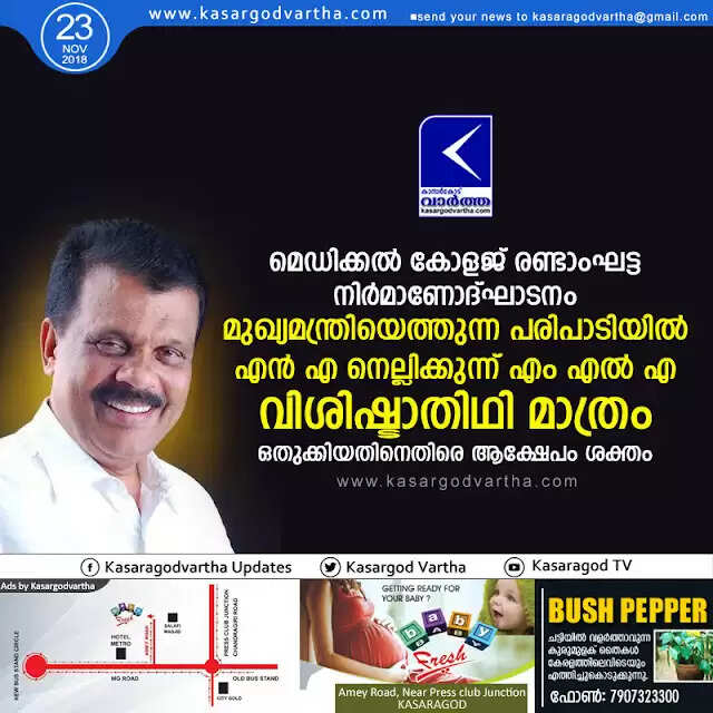 Keywords:  Kasaragod, Kerala, news, Medical College, Top-Headlines, N.A.Nellikunnu, MLA, Pinarayi-Vijayan, Politics, N.A Nellikkunnu confine in Medical college construction inauguration program