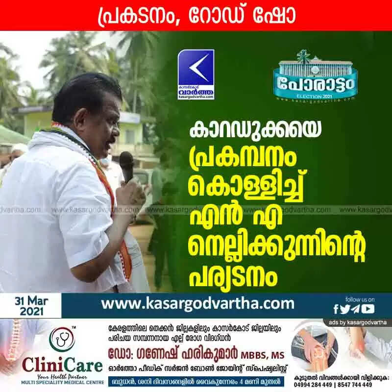 Keywords: Kerala, News, Kasaragod, Top-Headlines, Political party, Politics, Election, Niyamasabha-Election-2021, N.A.Nellikunnu, UDF, NA Nellikunnu's election campaign shakes up Karaduka.