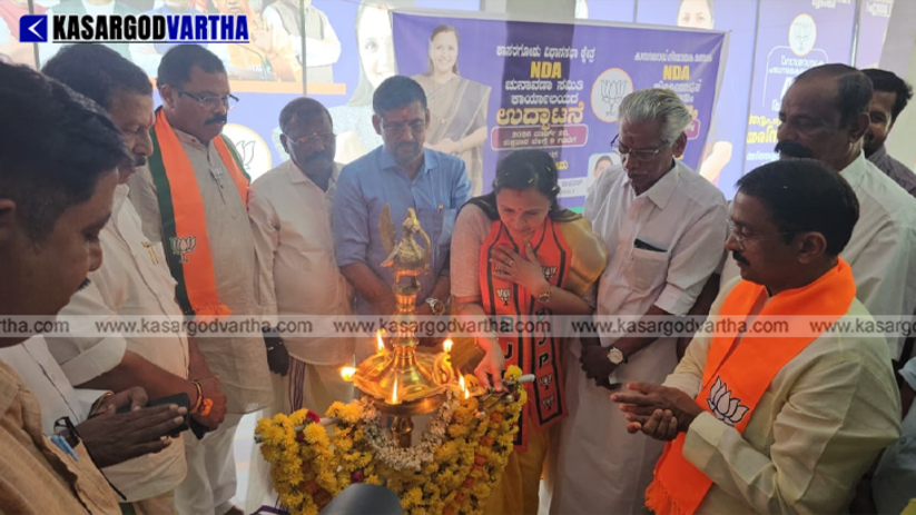 ‘മലയാളികളെ പ്രവാസികളാക്കിയത് മാറ്റിയത് ഇടത് - വലത് മുന്നണികൾ; വികസന മുരടിപ്പിന് കാരണം മുസ്ലിം ലീഗ്’; പ്രശാന്ത് താക്കൂറും അശ്വിനി എം എല്ലും; കാസർകോട് എൻഡിഎ തിരഞ്ഞെടുപ്പ് കാര്യാലയം തുറന്നു