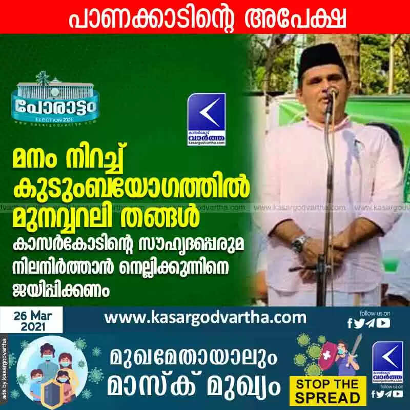 Keywords:  Kerala, News, Kasaragod, Top-Headlines, Political party, Politics, Election, Niyamasabha-Election-2021, N.A.Nellikunnu, Munavar Ali Shihab Thangal, Nellikunnu must win to maintain the friendship of Kasargod: Munavar Ali Shihab Thangal.