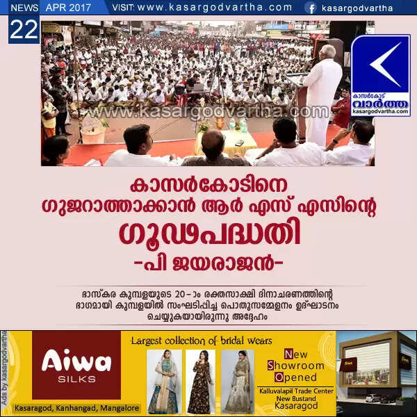 കാസര്‍കോടിനെ ഗുജറാത്താക്കാന്‍ ആര്‍ എസ് എസിന്റെ ഗൂഢപദ്ധതി: പി ജയരാജന്‍