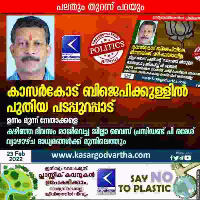 Keyowords:  Kasaragod, Kerala, News, Top-Headlines, Politics, BJP, President, Secretary, Issue, CPM, Thiruvananthapuram, High-Court, Case, Resigned district vice-president P Ramesh will appear before the media on Thursday.