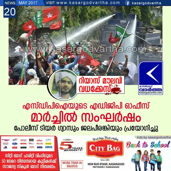 റിയാസ് മൗലവി വധം: എസ്ഡിപിഐയുടെ എഡിജിപി ഓഫീസ് മാര്ച്ചില് സംഘര്ഷം; പോലീസ് ടിയര് ഗ്യാസും ജലപീരങ്കിയും പ്രയോഗിച്ചു