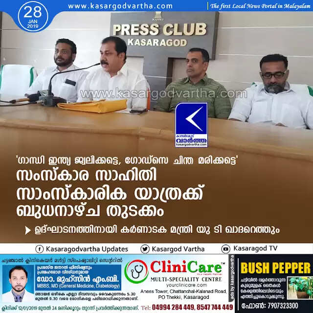 Keywords:  Samskara Sahithi's Samskarika Yathra will be started on Wednesday, Kasaragod, News, Inauguration, Press meet, Kerala, Politics.