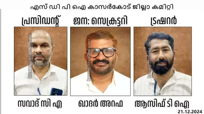 എസ് ഡി പി ഐ ജില്ലാ പ്രസിഡന്റായി സി എ സവാദിനെയും ജനറല് സെക്രട്ടറിയായി ഖാദര് അറഫയെയും യോഗം തിരഞ്ഞെടുത്തു. കാസര്കോട് മുനിസിപ്പല് വനിതാ ഹാളില് നടന്ന എന്ന എസ്ഡിപിഐ ജില്ലാ പ്രതിസഭയില് വെച്ചാണ് 2024- 27 കാലയളവിലേക്കുള്ള പുതിയ നേതൃത്വത്തെ പ്രഖ്യാപിച്ചത്. സംസ്ഥാന പ്രസിഡണ്ട് സിപിഐ ലത്തീഫ് ഉദ്ഘാടനം ചെയ്തു. ജനറല് സെക്രട്ടറി അബ്ദുല് ജബ്ബാര് തിരഞ്ഞെടുപ്പ് നിയന്ത്രിച്ചു. 2021-24 വാര്ഷിക റിപ്പോര്ട്ട് ജനറല് സെക്രട്ടറി എ എച്ച് മുനീറും രാഷ്ട്രീയ സെക്രട്ടറി ഖാദര് അറഫയും അവതരിപ്പിച്ചു.