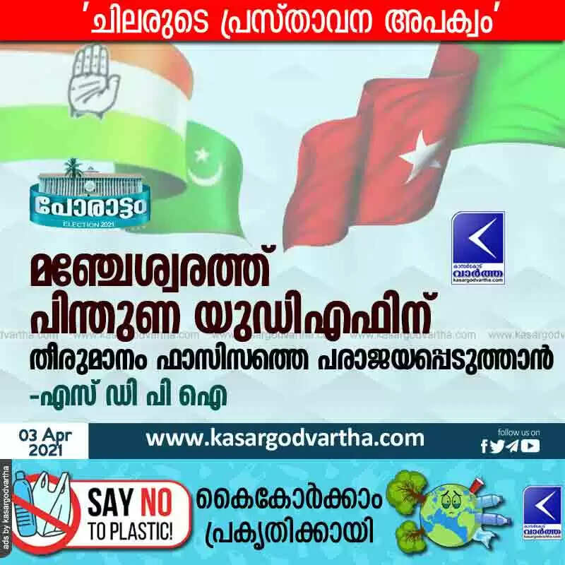 മഞ്ചേശ്വരത്ത് പിന്തുണ യുഡിഎഫിന്; തീരുമാനം ഫാസിസത്തെ പരാജയപ്പെടുത്താൻ - എസ് ഡി പി ഐ