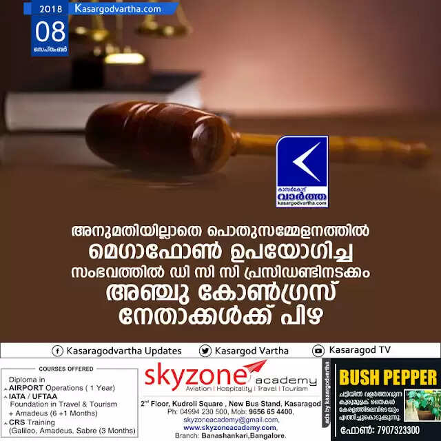 Keywords:  Kasaragod, Kerala, news, Kanhangad, Congress, court, Fine, Political party, Politics, Top-Headlines, Used mega phone with out permission; Fine for 5 Congress leaders