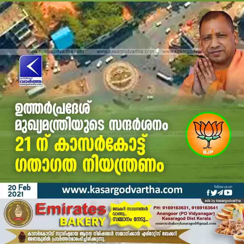 ഉത്തർപ്രദേശ് മുഖ്യമന്ത്രിയുടെ സന്ദർശനം; 21 ന് കാസർകോട്ട് ഗതാഗത നിയന്ത്രണം