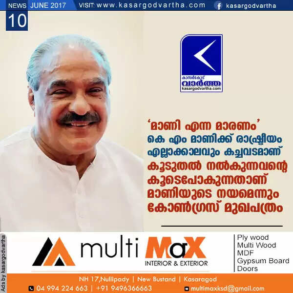 'മാണി എന്ന മാരണം'; കെ എം മാണിക്ക് രാഷ്ട്രീയം എല്ലാക്കാലവും കച്ചവടമാണ്, കൂടുതല് നല്കുന്നവന്റെ കൂടെപോകുന്നതാണ് മാണിയുടെ നയമെന്നും കോണ്ഗ്രസ് മുഖപത്രം