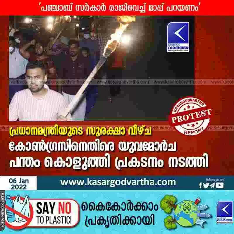 പ്രധാനമന്ത്രിയുടെ സുരക്ഷാ വീഴ്ച; കോൺഗ്രസിനെതിരെ യുവമോര്ച പന്തം കൊളുത്തി പ്രകടനം നടത്തി; 'പഞ്ചാബ് സർകാർ രാജിവെച്ച് മാപ്പ് പറയണം'