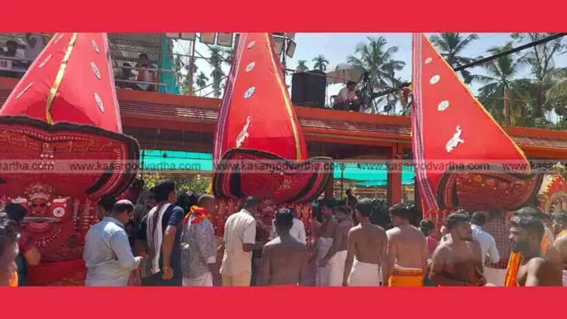 Festival | പെരുങ്കളിയാട്ടം: ആദൂർ ഭഗവതി ക്ഷേത്രത്തിൽ മൂന്ന് ഭഗവതിമാരുടെയും തിരുമുടി ഉയർന്നു