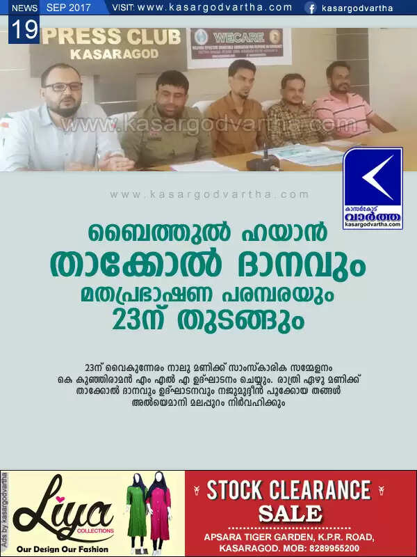 Keywords : Udma, Mangad, Press meet, Religion, Programme, Inauguration, Baithul Ayan, Baithul Hayan key handing over ceremony.