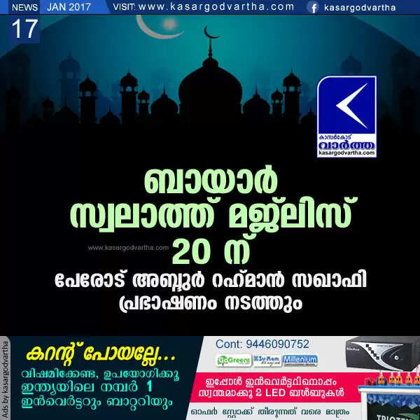 Keywords: Kasaragod, Kerala, Bayar, swalath-majlis-anniversary, Bayar Swalath Majlis on 20th.