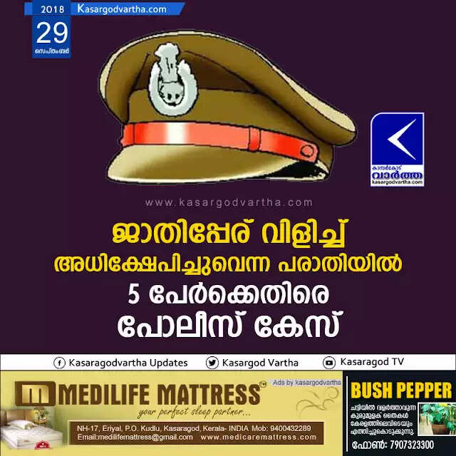 ജാതിപ്പേര് വിളിച്ച് അധിക്ഷേപിച്ചുവെന്ന പരാതിയില് 5 പേര്ക്കെതിരെ പോലീസ് കേസ്
